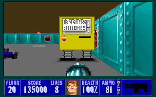 The big bad boss guy is a walking Macintosh / Banana Jr spewing anti Mac stuff (this was a long time ago before anyone used Windows) |