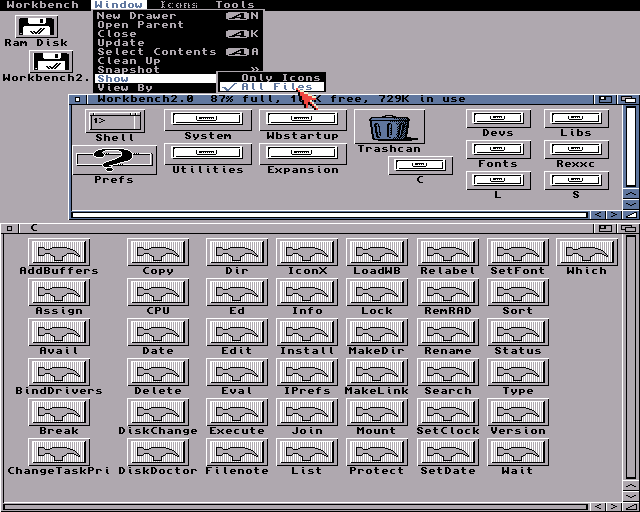 A quick look at Amiga Workbench 2.0. Again, these screen shots were