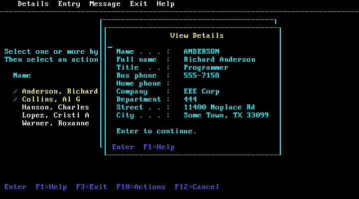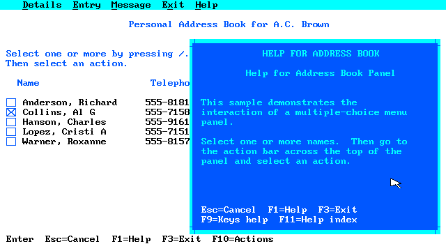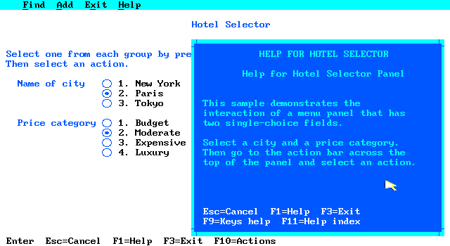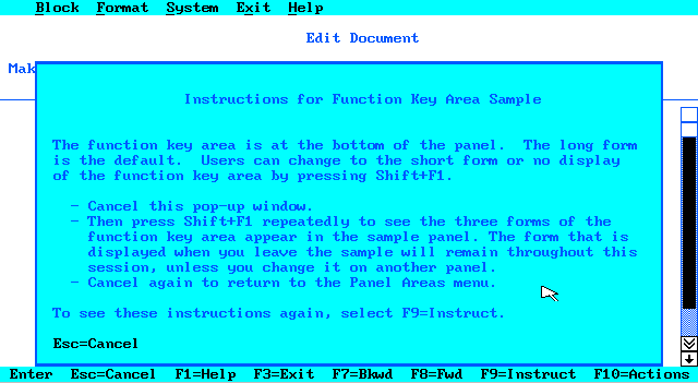 The final part of a "panel" is the Function Key Area. The program demonstrates