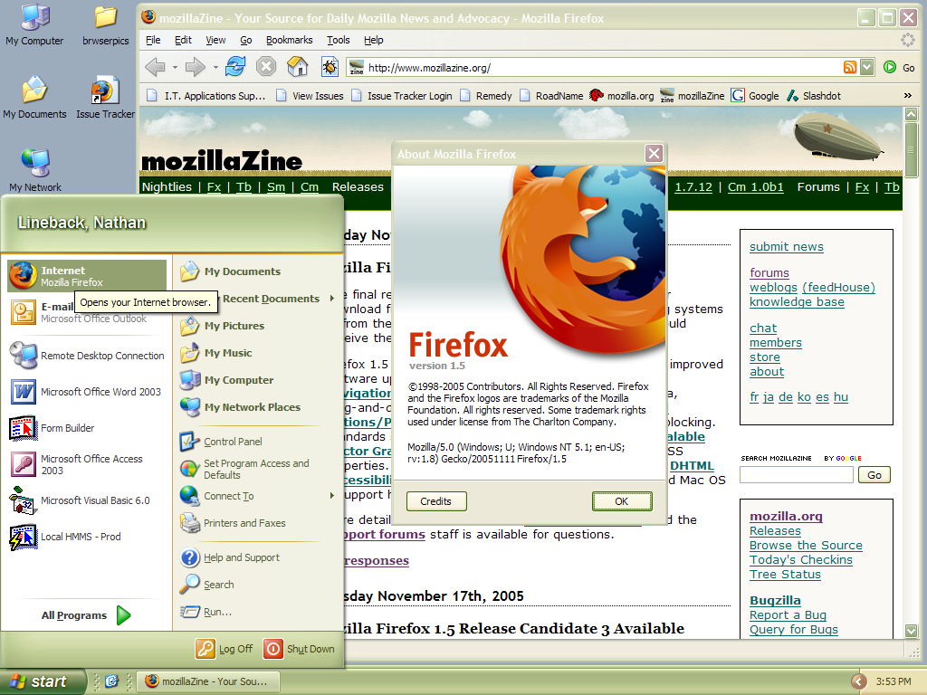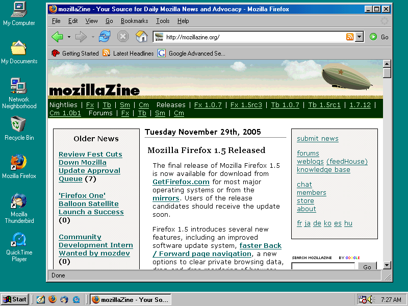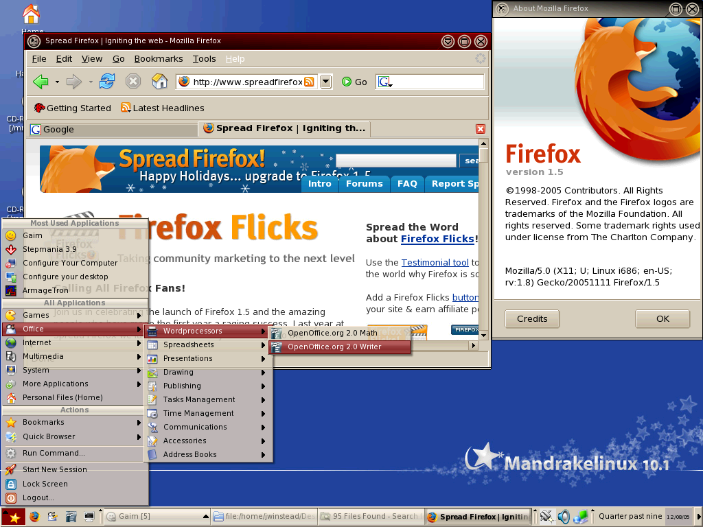 Mozilla.org recently released Firefox 1.5. Firefox runs under a huge