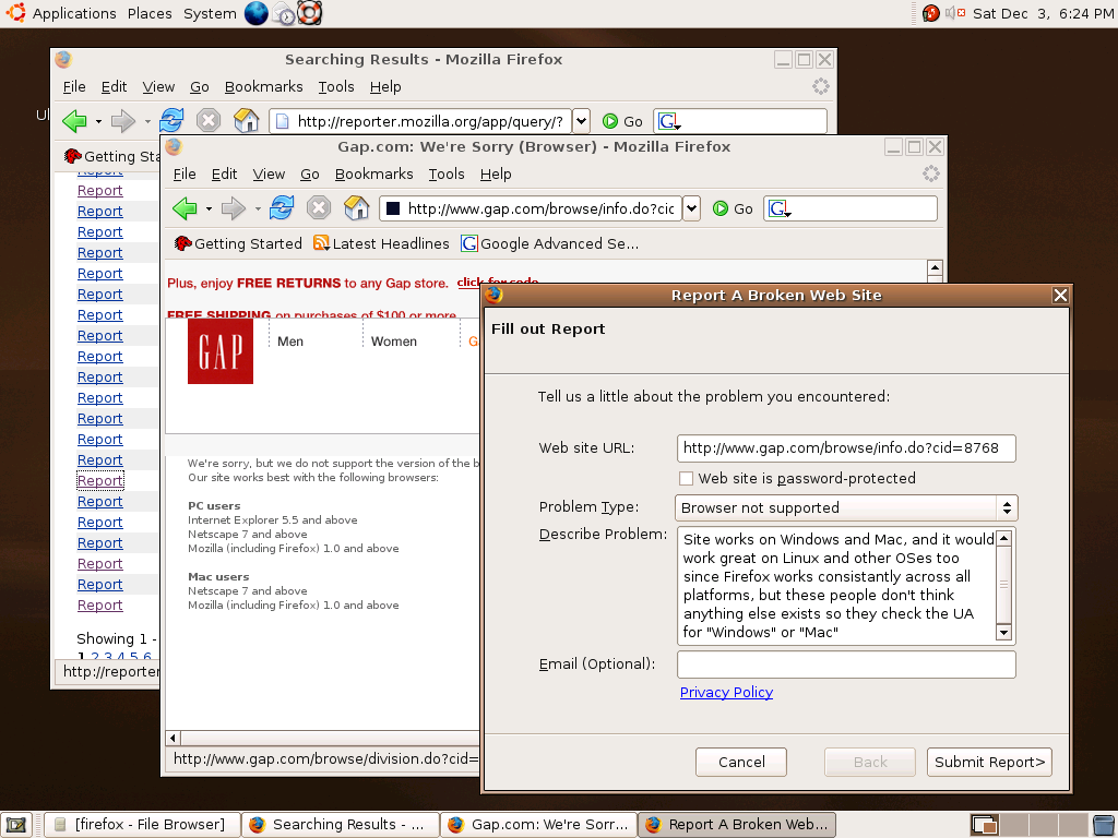 A tribute to Firefox 1.5 and the OS/GUIs that it runs under.