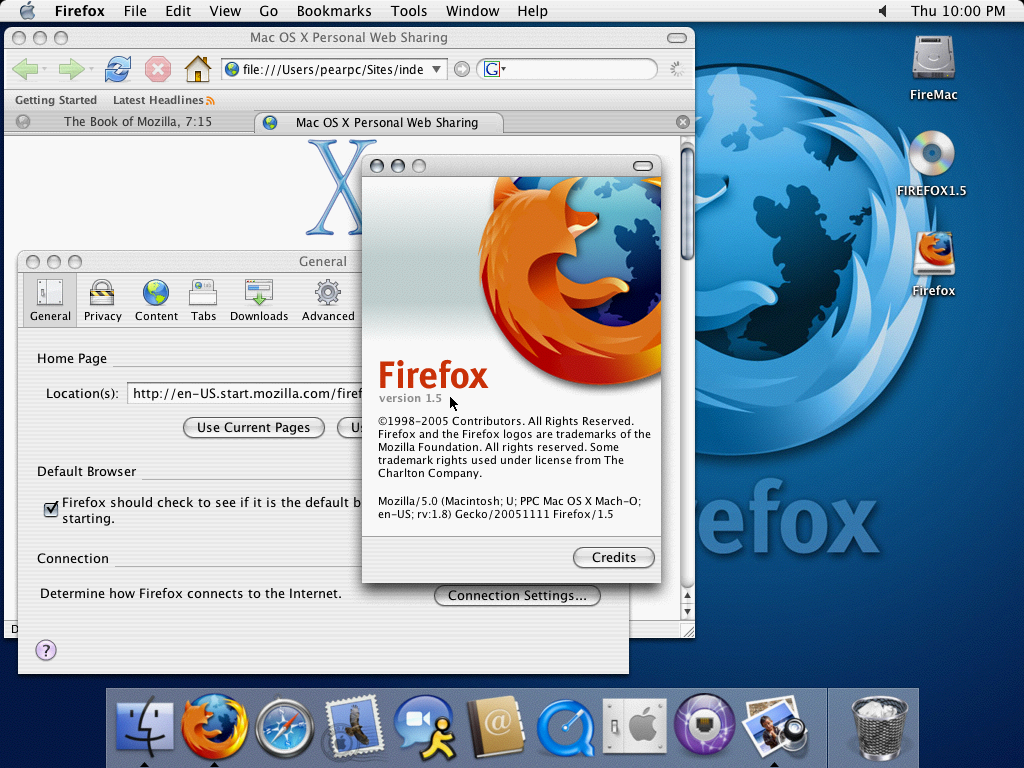 Firefox 1.5 also runs on modern Apple Macintosh computers under MacOS