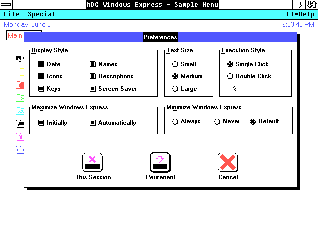 hDC Windows Express 2.11 is a customizable menu system designed for