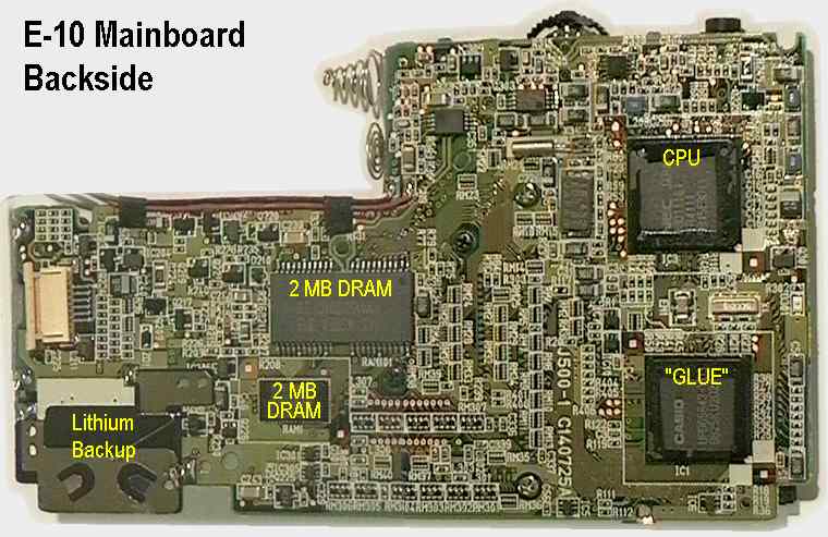 . In the moment I have no more details about the chips used in the E-10. What I called 'Glue' on the mainboard image is a Casio custom chip. I think it integrates all the necessary functions the CPU doesn't have on board. The CPU is a NEC 4110, running at 40MHz (yes, basically there could be an 'Eco Hack' for the E-10 <g>). If you are interested in the data sheet of the CPU, visit NEC's processor page (pick the right link, it may be that the original 4110 is obsolete). . There are a million things I didn't try yet. The E-10 has a dedicated modem port on the cradle connector, but I would like to know, whether it could be adapted to a normal modem. I still had to play alot with the IrDA port and my mobile phone which is also IrDA compliant. And finally I had to check out, how hard it is to write apps for WinCE ... you see, I'm far from 'knowing' the E-10 and it's possibilities. . |
